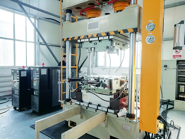 由于玻璃鋼材料的特殊性,模具溫度不僅影響產(chǎn)品的成型效果,還決定了制品的表面質(zhì)量和機(jī)械性能。上下模具需要分別控溫,上模溫度需保持在155℃左右,而下模溫度則略低,控制在140℃至150℃之間。